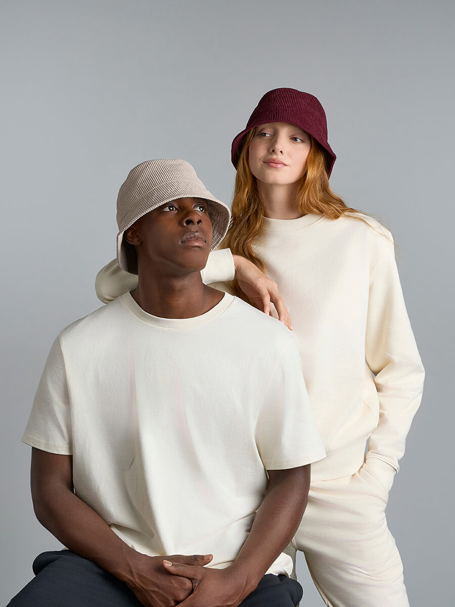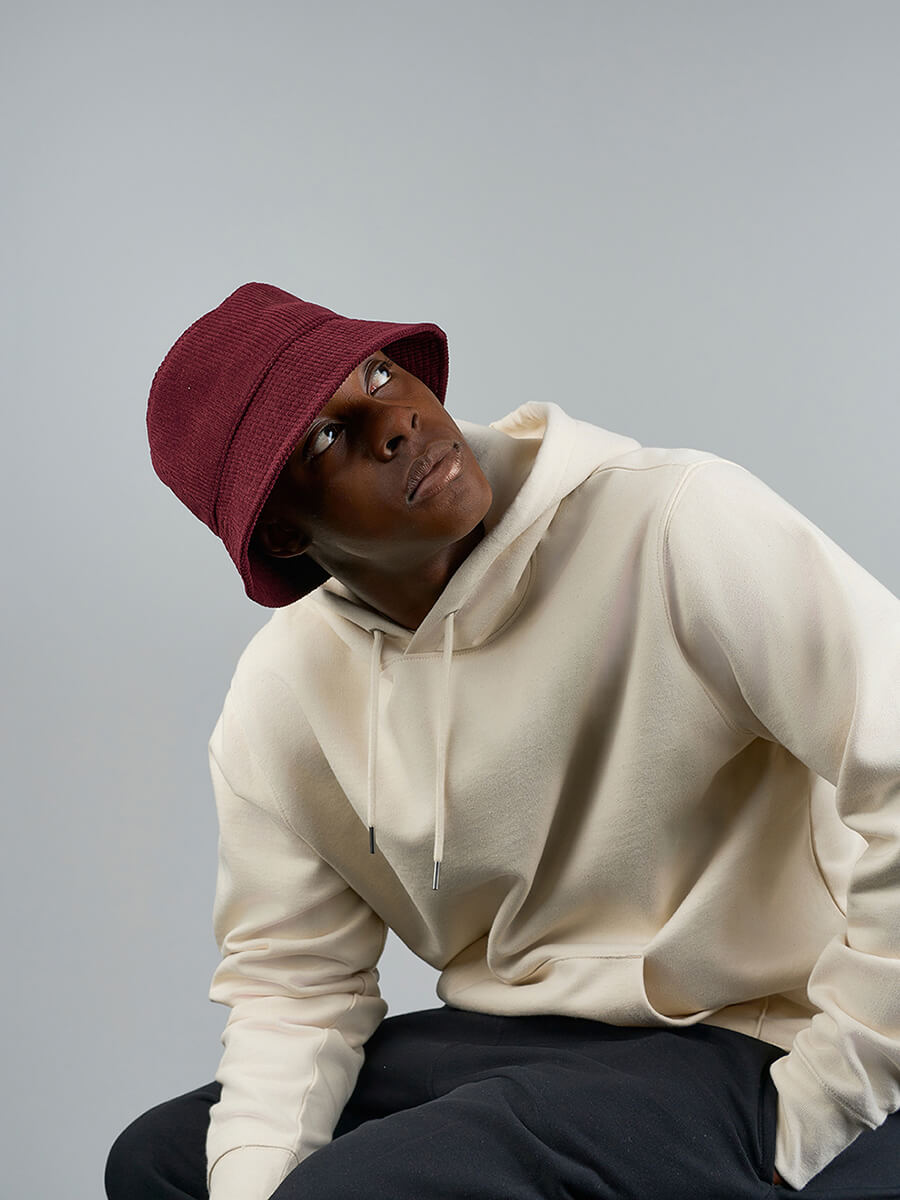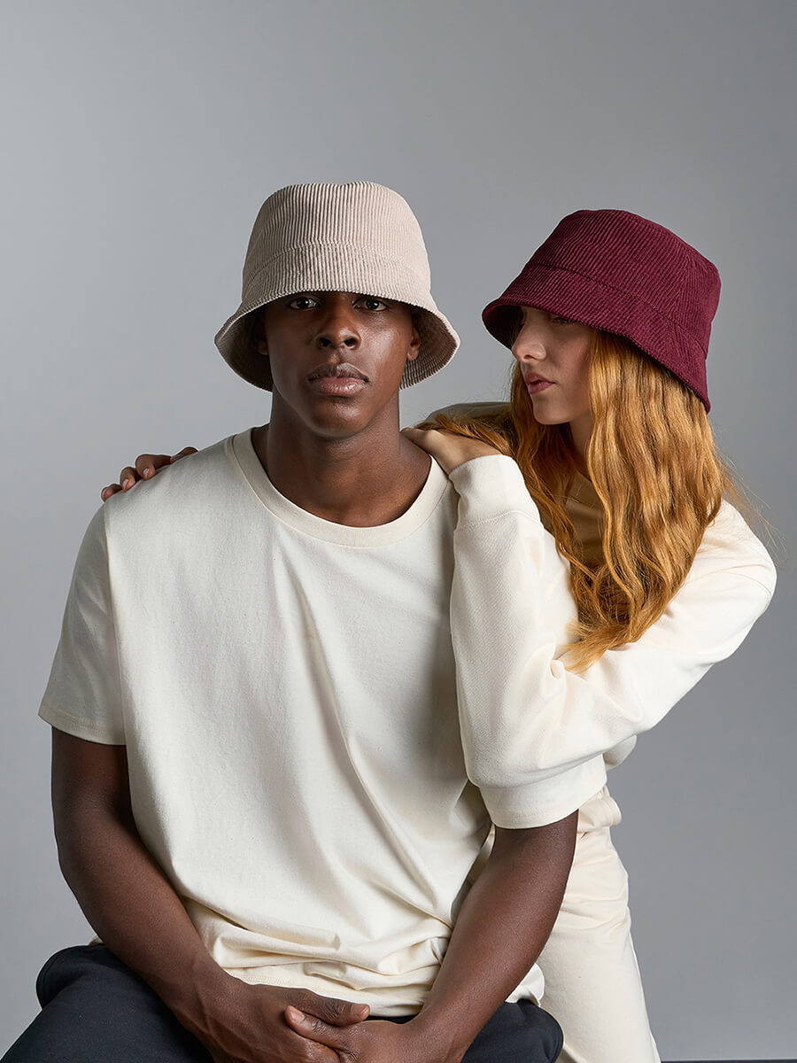 - Bucket in velluto di poliestere riciclato a coste