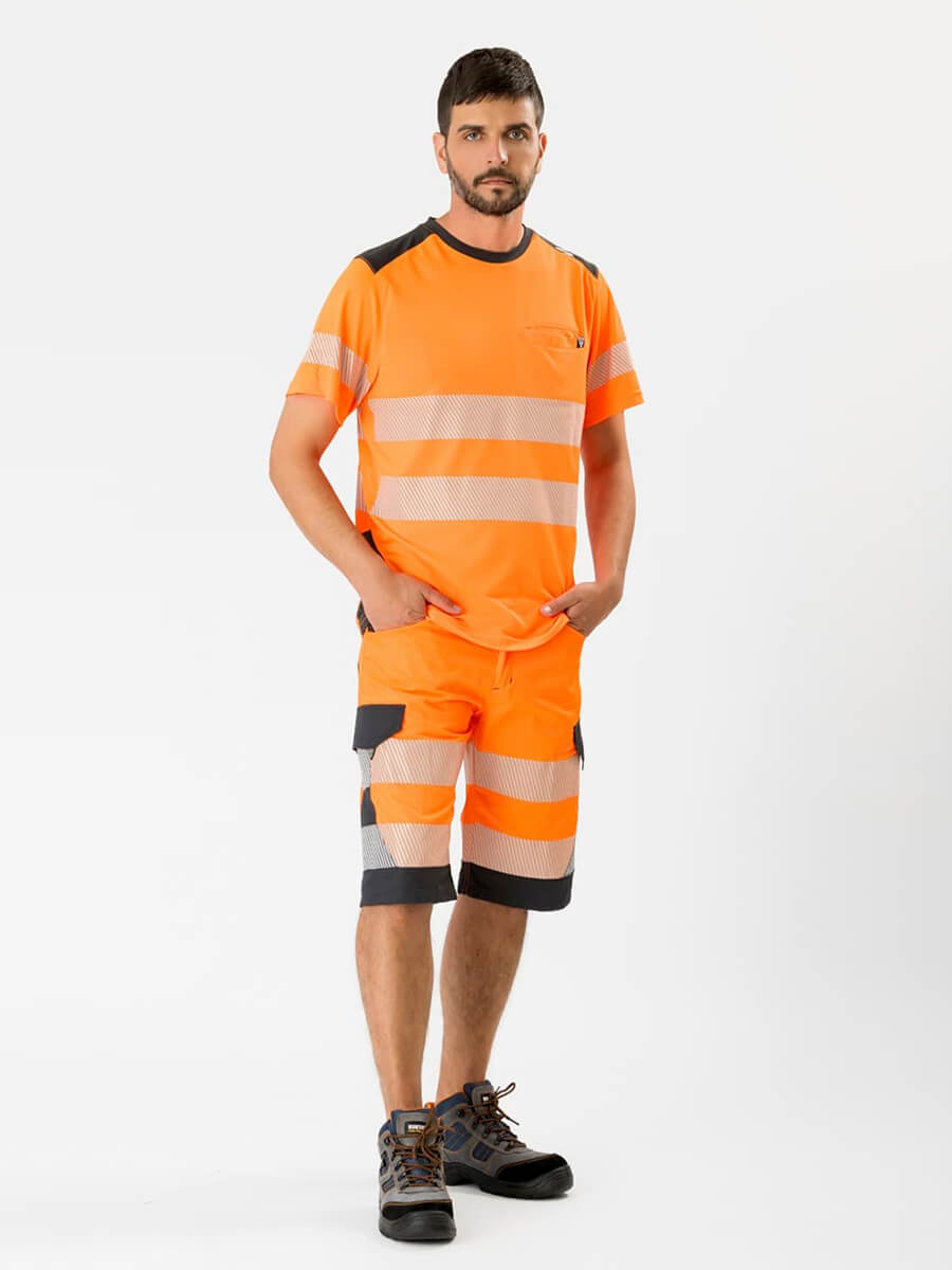 - Bermuda combinato alta visibilità con bande riflettenti segmentate