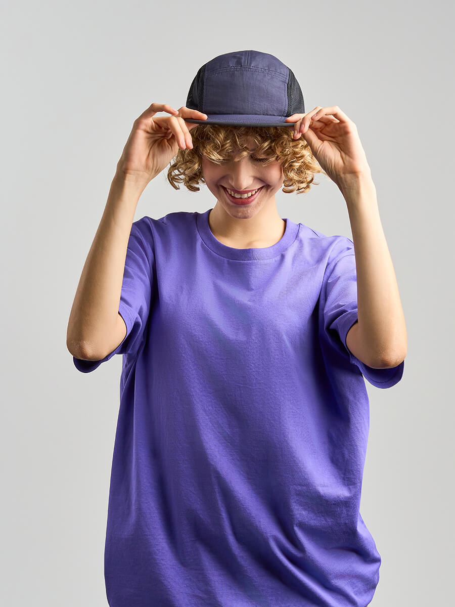 - Cappello 5 pannelli non strutturato con visiera piatta e morbida