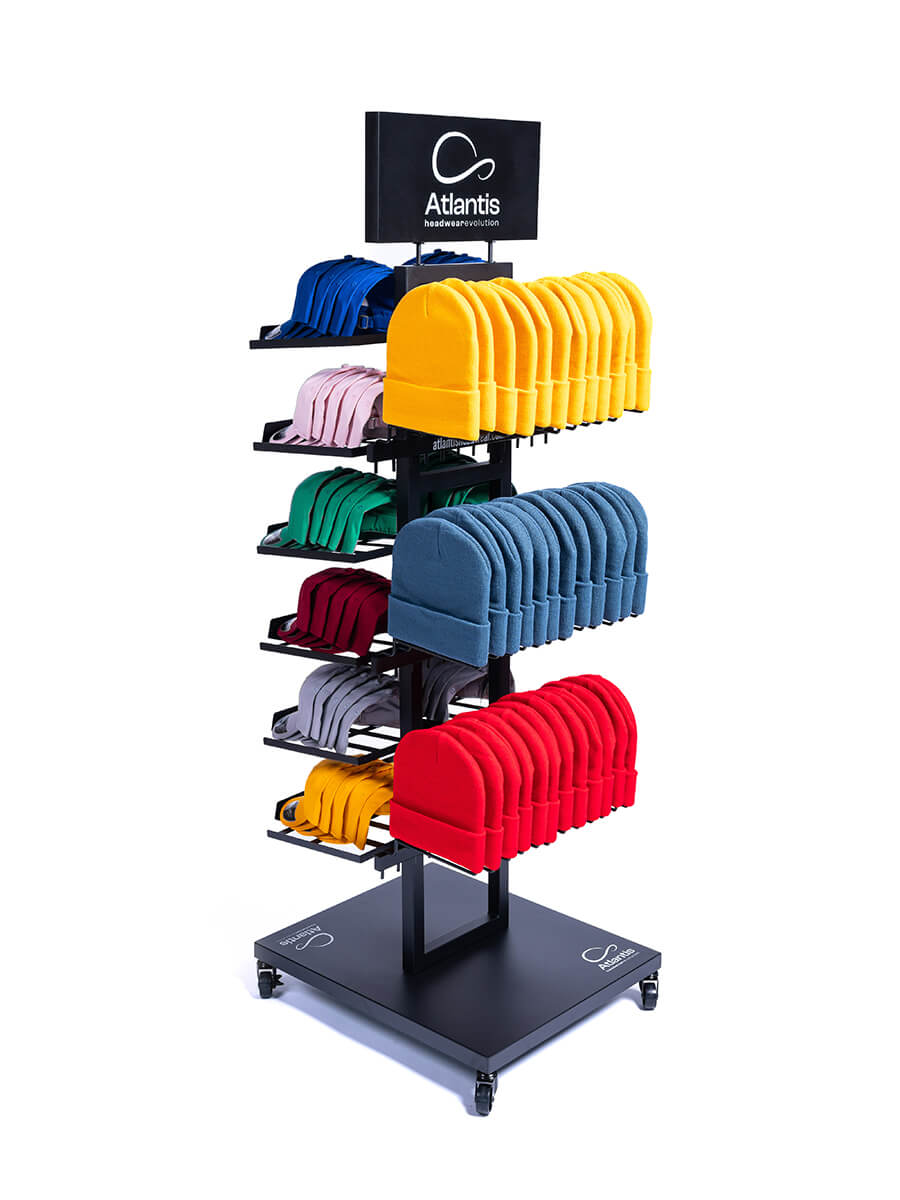 - Espositore bifacciale con 24 rastrelliere per capplli Baseballl e 3 set di ganci per cuffie
